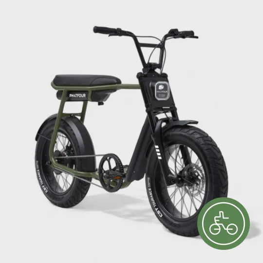 De Phatfour FLX Army Green is een elektrische fiets die stijl en functionaliteit combineert. Met zijn opvallende legergroene kleur en robuuste frame is deze fiets een echte blikvanger.